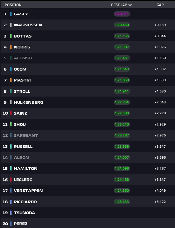 „Alex je usporavao pošto je imao McLaren ispred sebe. Ne znam da li je još neki bolid bio ispred tog McLarena. Bila je to prava šteta pošto su moje gume do početka kruga bile potpuno hladne. Imao sam problema već u prvoj krivini, dok Charles nije ni stigao da započne svoj krug“, izjavio je Vettel.