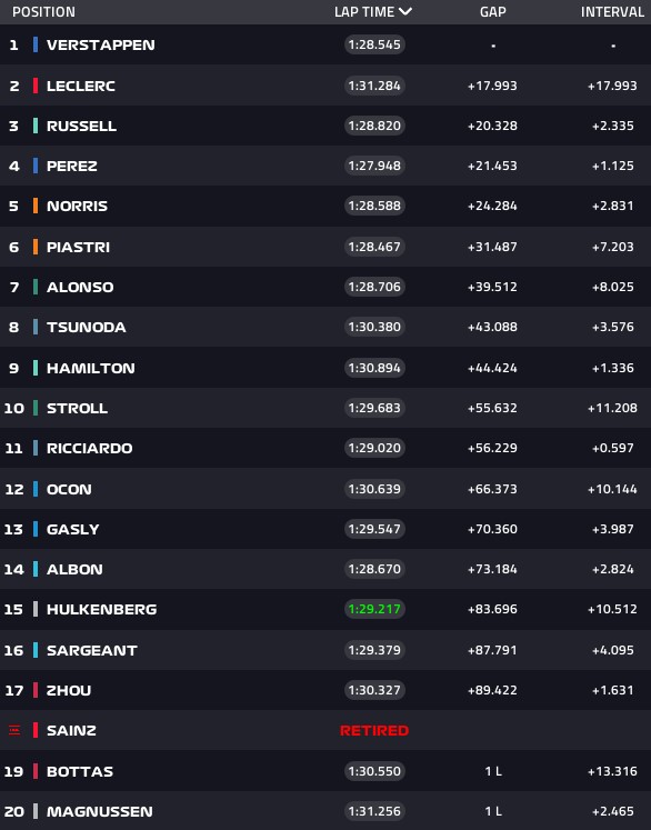 Delegat FIA Jo Bauer je nakon trke izdao zvanično saopštenje da se proveravaju podaci sa starta na bolidima 7 (Raikkonen) i 99 (Giovinazzi).